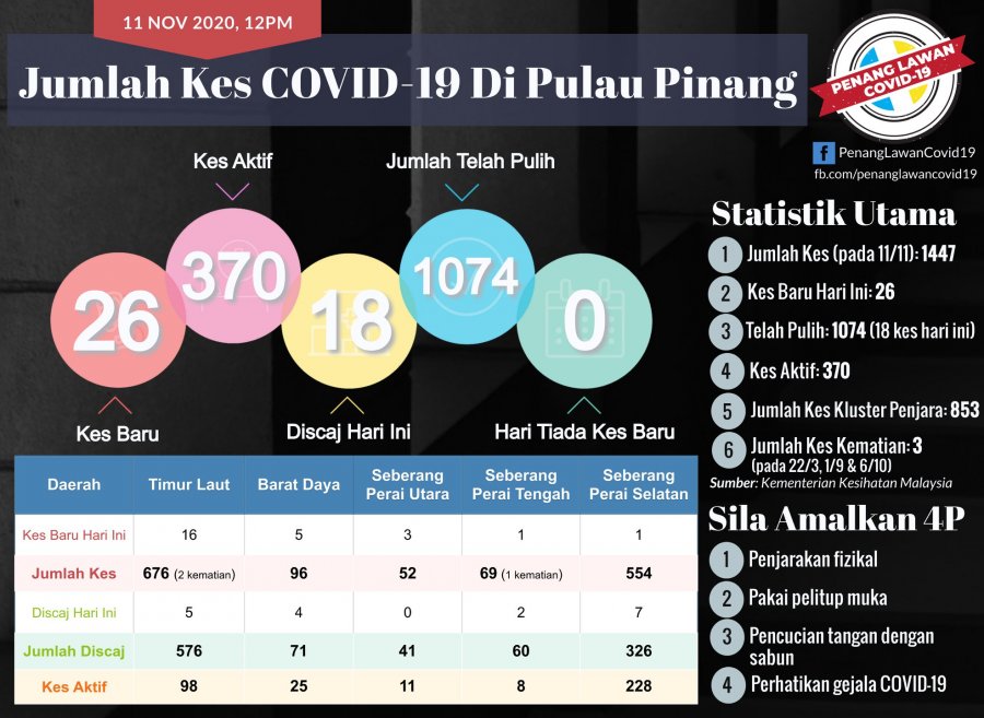 ➡️槟州昨日新增26例,其中15宗源自英丹感染群(Kluster Intan)、4宗源自峇央感染群(Kluster Bayan)、1宗峇东感染群(Kluster Permatang)及1宗自威省监狱感染群;另外5宗则源自其他检测或严重急性呼吸道感染(SARI)患者。