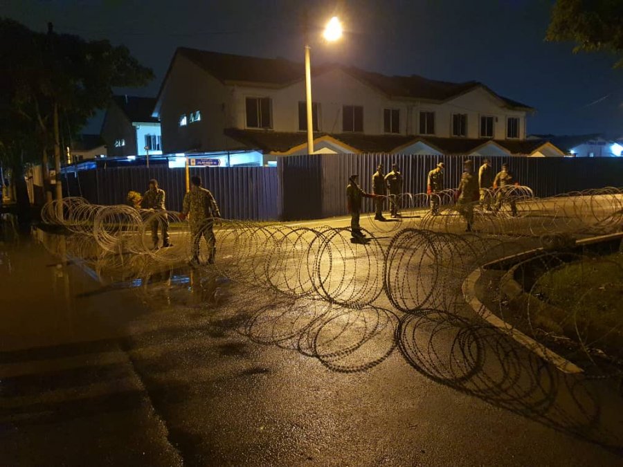 顶级手套集团位于巴生区的员工宿舍爆发集体染疫,截至昨天防长公布的数据已达215宗,国安会指示17日起实行强管令,而凌晨起,军警已大军开入强管区开始全面封锁行动。