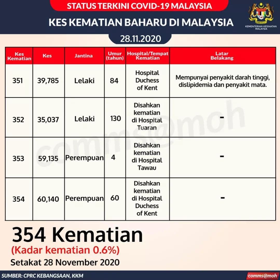 📌今天有4人死亡,全部来自沙巴。死者资料如下: