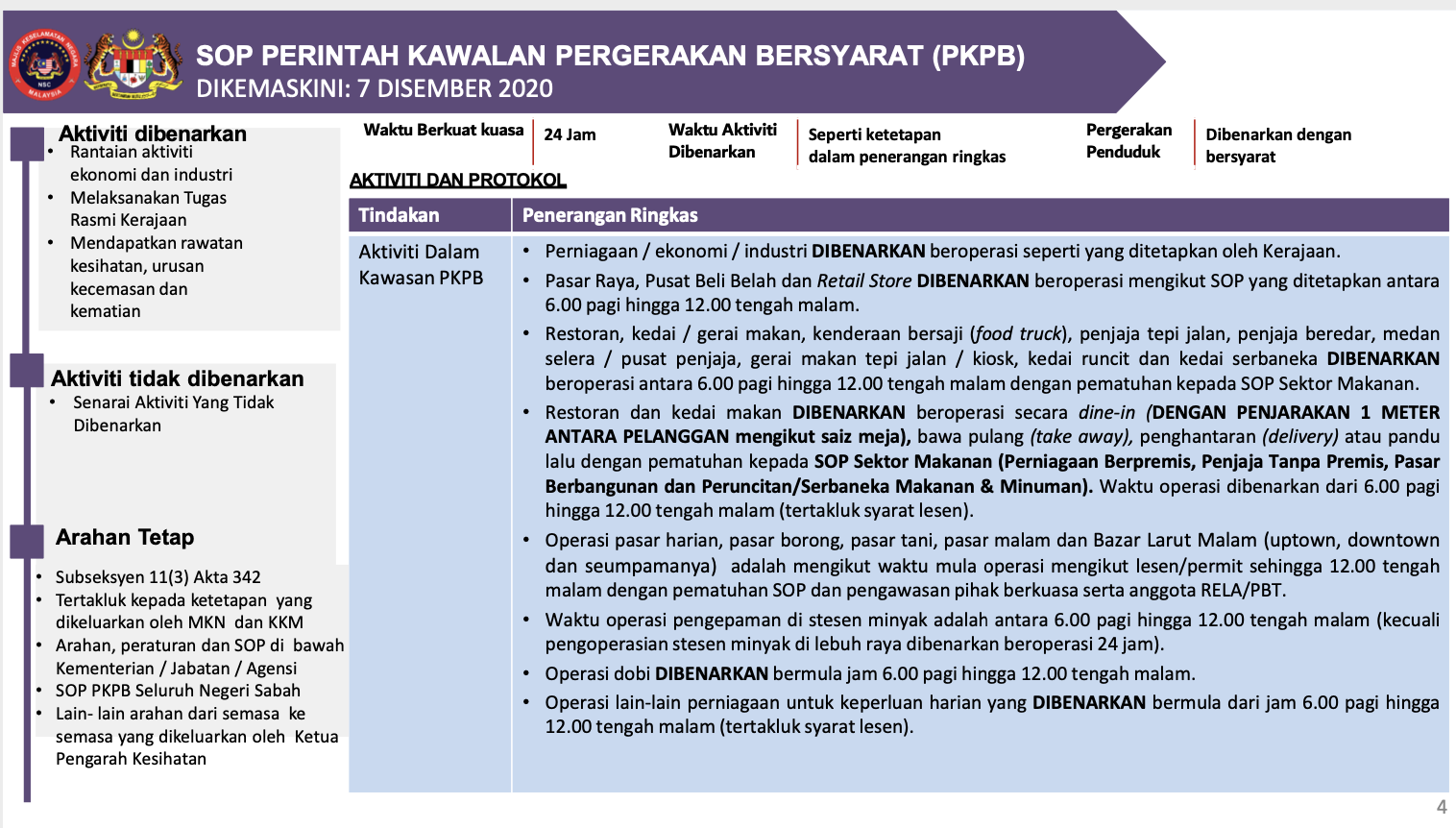 随着跨州及共车限制令即日起解除后,国安会今日更新CMCO管制区内的SOP,即日起,CMCO区内所有餐饮店,堂食的用餐人数将以餐桌大小来衡量(不再限制人数),营业时间同样获准维持至午夜12时打烊。