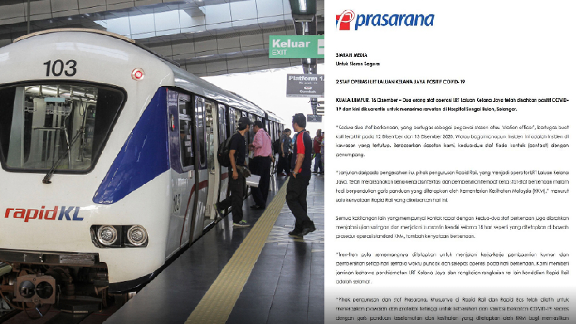 ➡️Rapid Rail通报,轻快铁柯拉娜再也干线的2名员工染疫,目前已隔离并送至双溪毛糯医院治疗;这两名任职车站管理员的员工,并没有与乘客接触!