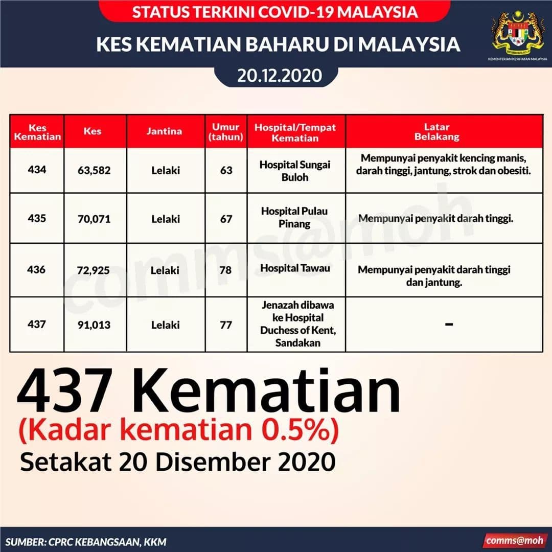 📌今天有4人死亡,1人来自雪州、1人来自槟城及2人来自沙巴。