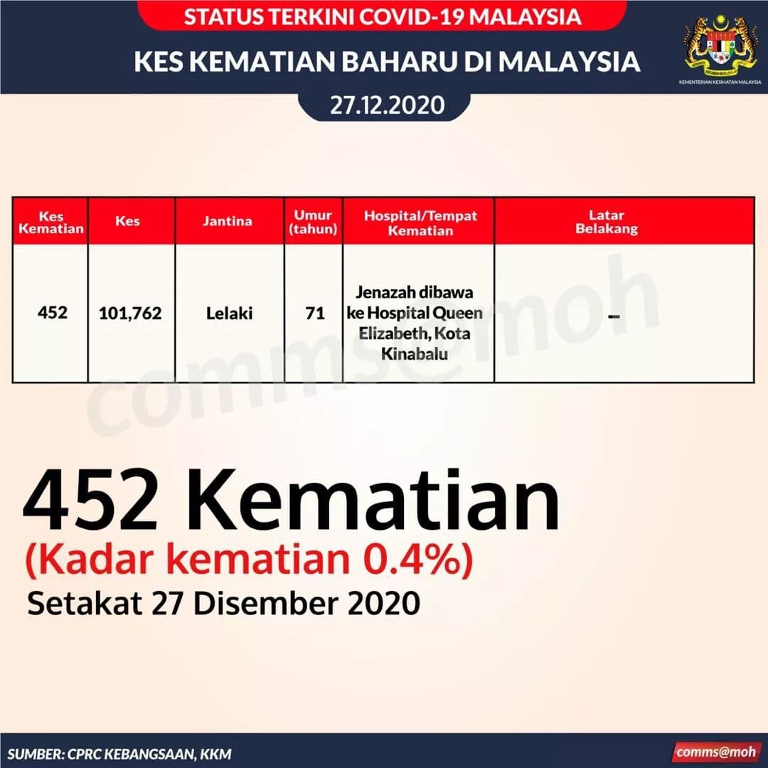📌今天有1人死亡,来自沙巴。死者资料如下: