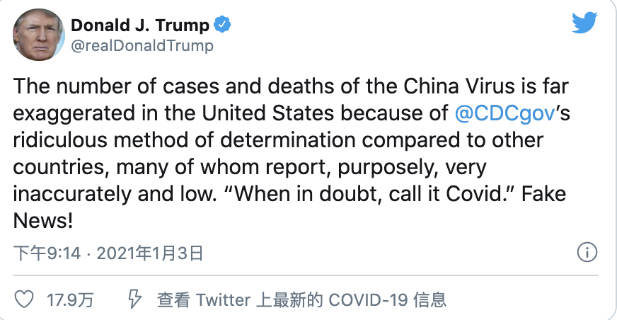 ➡️美国总统特朗普发推指美国病例和死亡数被严重夸大,原因是和其他国家相比,美疾控中心统计确诊及死亡方法荒谬,对此,顶级传染病专家福奇回应死亡人数真切,想要确认可到前线及医院观察实况就知道,医疗告急情况无法作假。