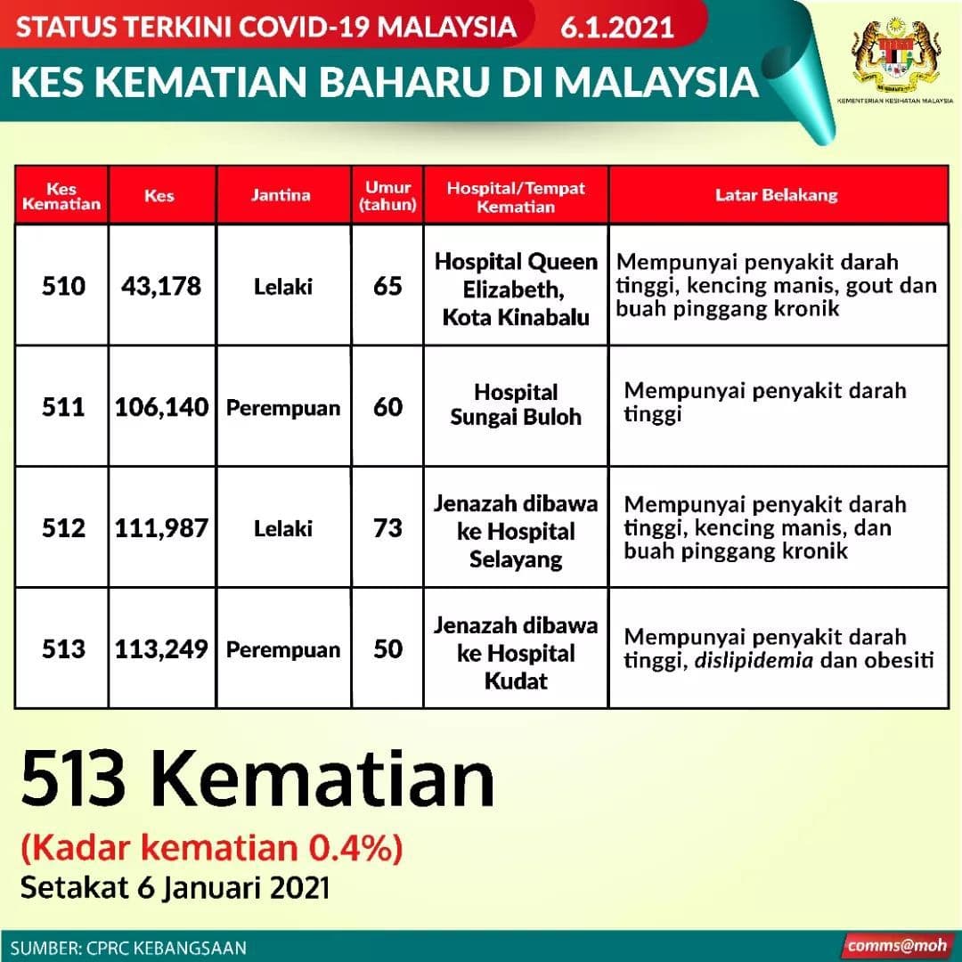 📌今天有4人死亡,2人来自沙巴、雪州1人及吉隆坡1人。死者资料如下: