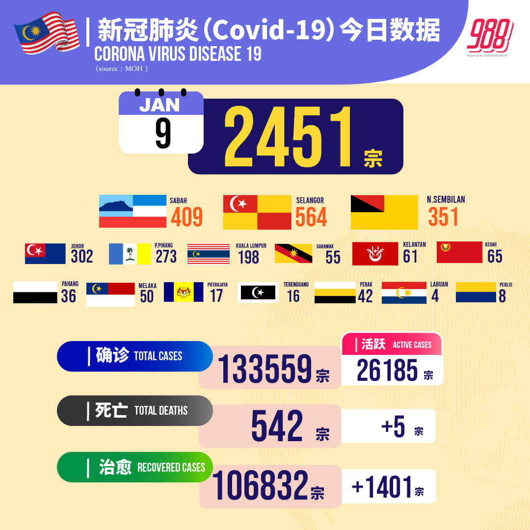 📌今天有5人死亡,3人来自柔佛、雪州1人及布城1人。