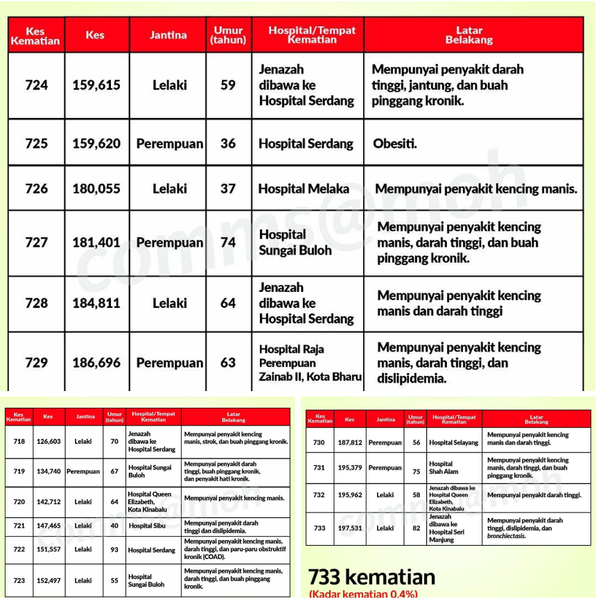 📌今天有16人死,分别来自雪州(9)、吉隆坡(1)、马六甲(1)、吉兰丹(1)、砂州(1)、沙巴(2)及霹雳(1)。死者资料如下: