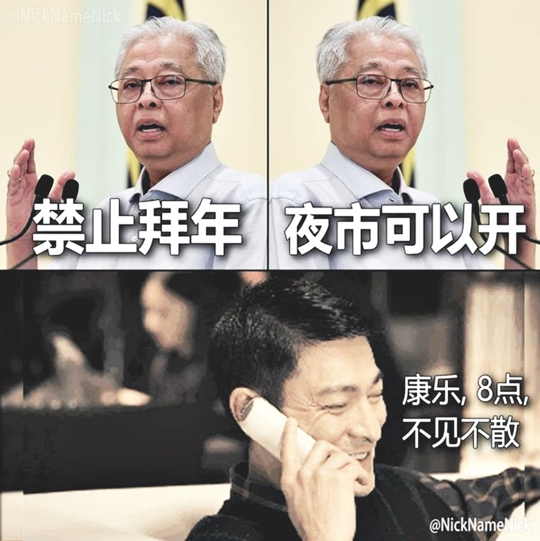 不过,他今早再发贴文强调,他昨日只是”讽刺”行管令不符逻辑的部分,促国人别真的到夜市去吃团圆饭或拜年。