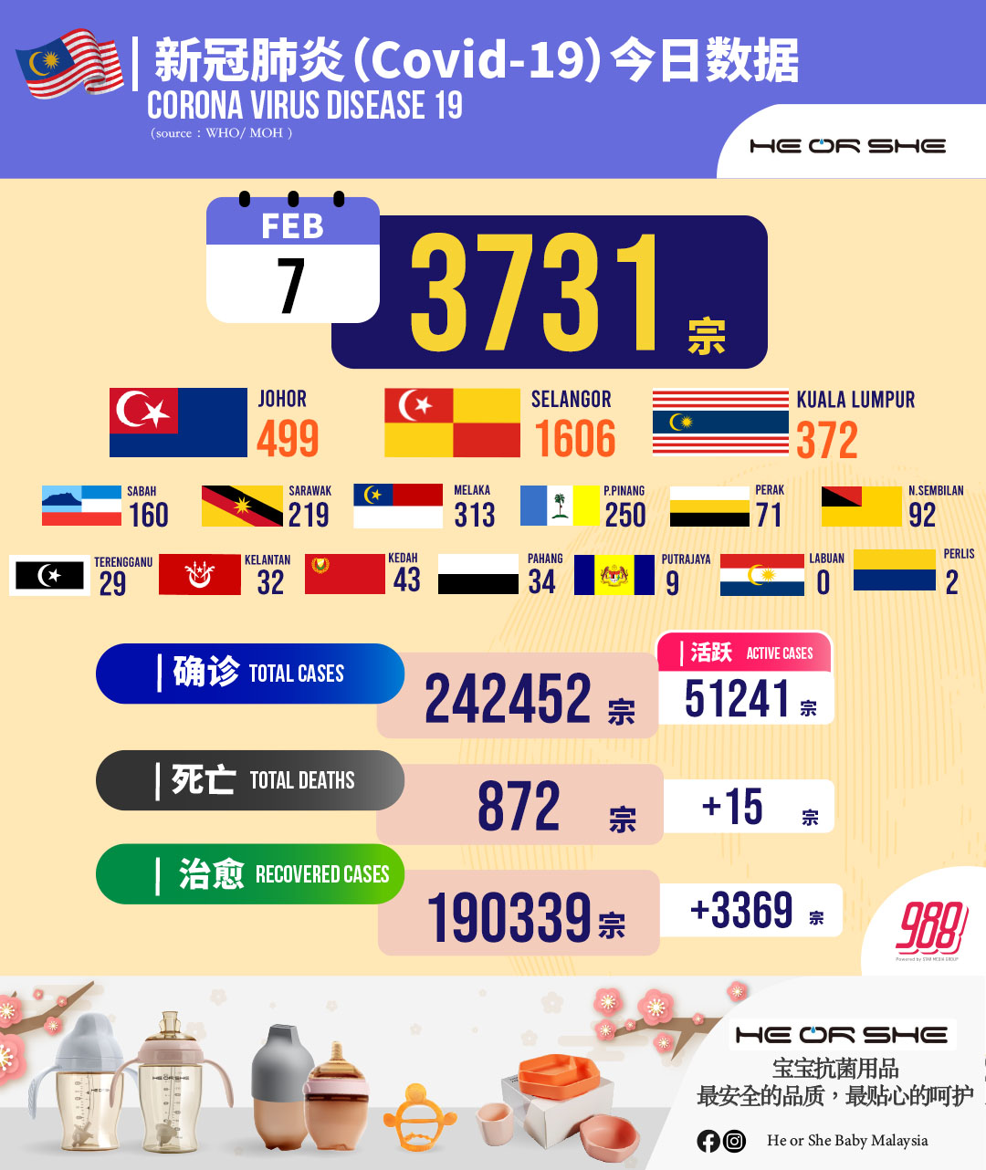 📌雪州病例还是全国最高,报1606宗,柔佛报499宗,吉隆坡第三,报372宗,马六甲第四,有313宗。