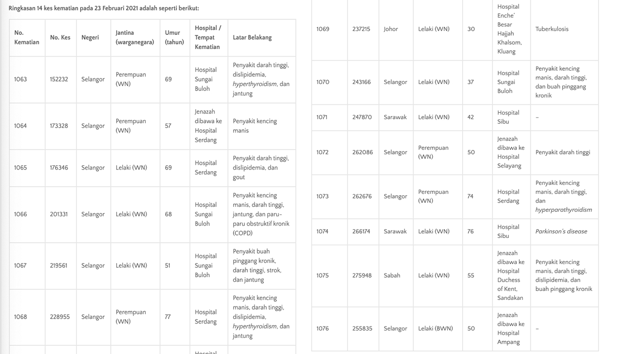 📌今天有14人死,分别来自雪州(10)、砂拉越(2)、沙巴(1)及柔佛(1)。死者资料如下: