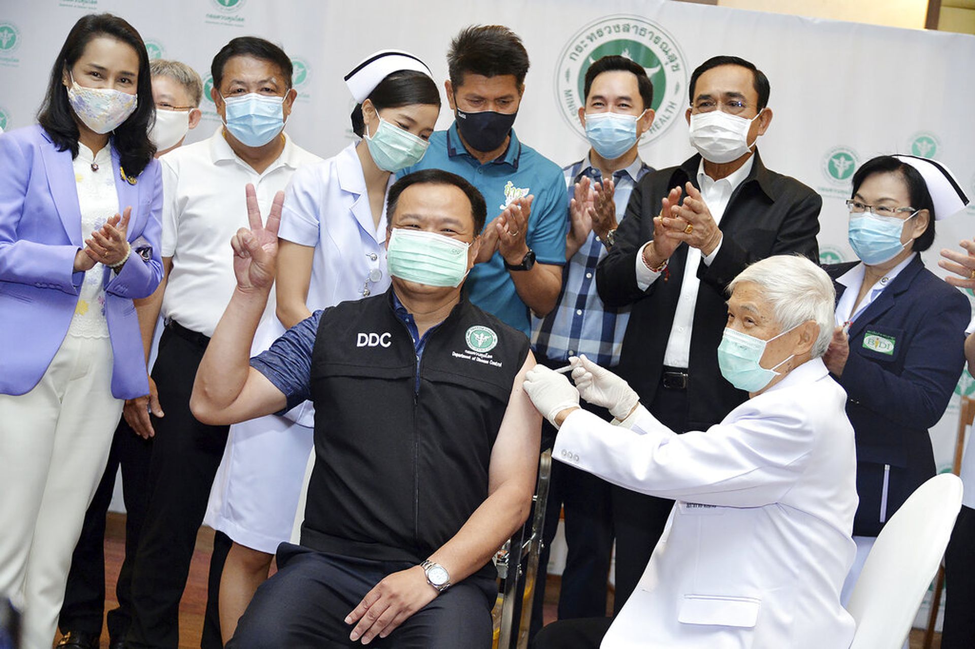 ➡️泰国正式启动疫苗接种,副总理兼公卫部长阿努廷成为全泰首位接种科兴疫苗的人。科兴疫苗年龄范围是18至59岁。66岁的总理巴育属超龄,所以没施打,但他有到场见证。