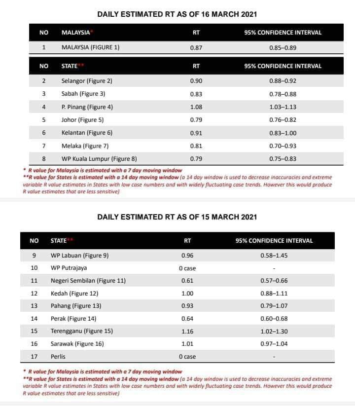 其他州属方面,纳闽0.96、彭亨0.93、吉兰丹0.91、雪州0.9、沙巴0.83、马六甲0.81、吉隆坡0.79、柔佛0.79、霹雳0.64、森州0.61、玻州及布城没病例。