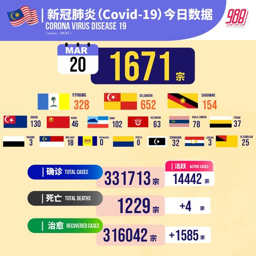 📌雪州今天病例仍是全国居首,报652宗,第二是槟城有328宗,第三砂州有154宗,柔佛第四有130宗,沙巴再回升至102宗。