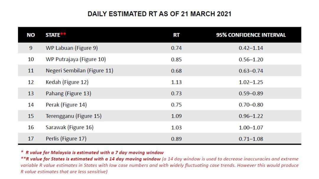 过去周末的疫情回升,全国基染数在3月20及21日维持在0.94水平,而有6个州超过1.0!