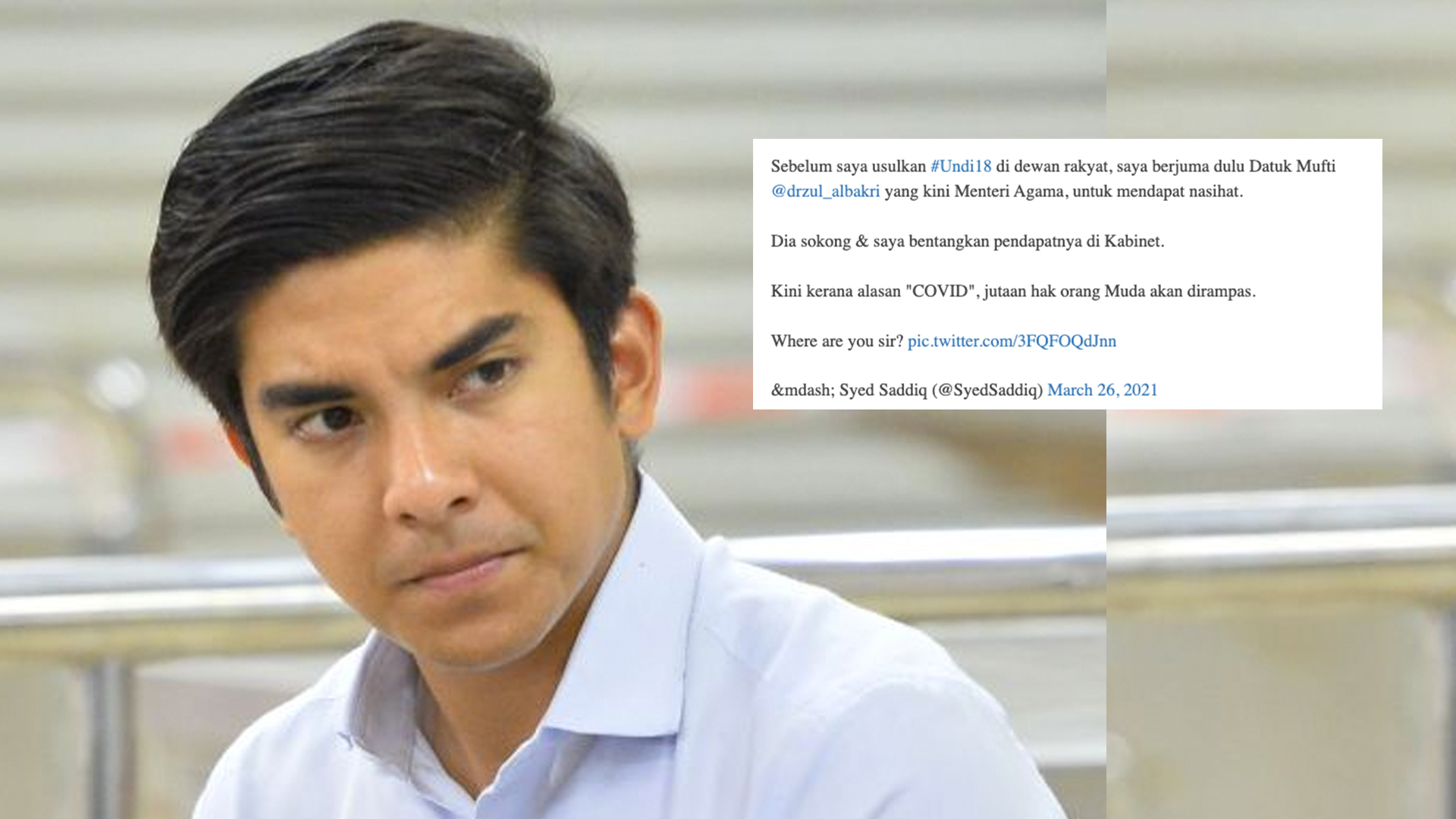 前青年及体育部长赛沙迪对此表示感慨,指曾与他一起奋斗促成此修宪法案成功提呈国会并获得通过的助理,即现任青年及体育部副部长、土青团团长旺阿末法依沙如今对Undi 18课题如此软弱。