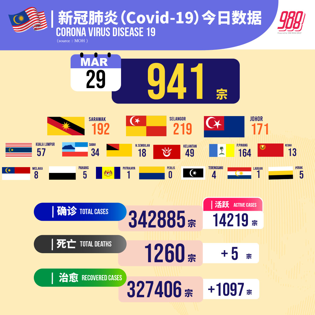 卫生部通报,截至29日12pm,我国新增 # 941例,累计病例至今 # 342,885 宗, 新增5死累计#1260死。