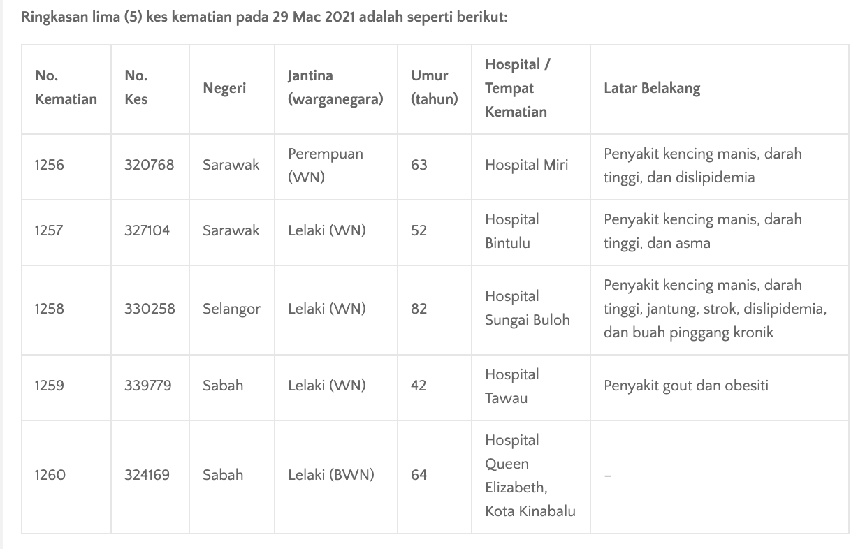 📌今天有5人死,分别来自砂州(2)、沙巴(2)及雪州(1)。死者资料如下: