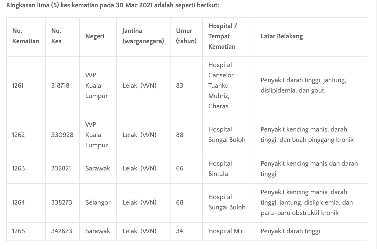 📌今天有5人死,分别来自砂州(2)、吉隆坡(2)及雪州(1)。死者资料如下: