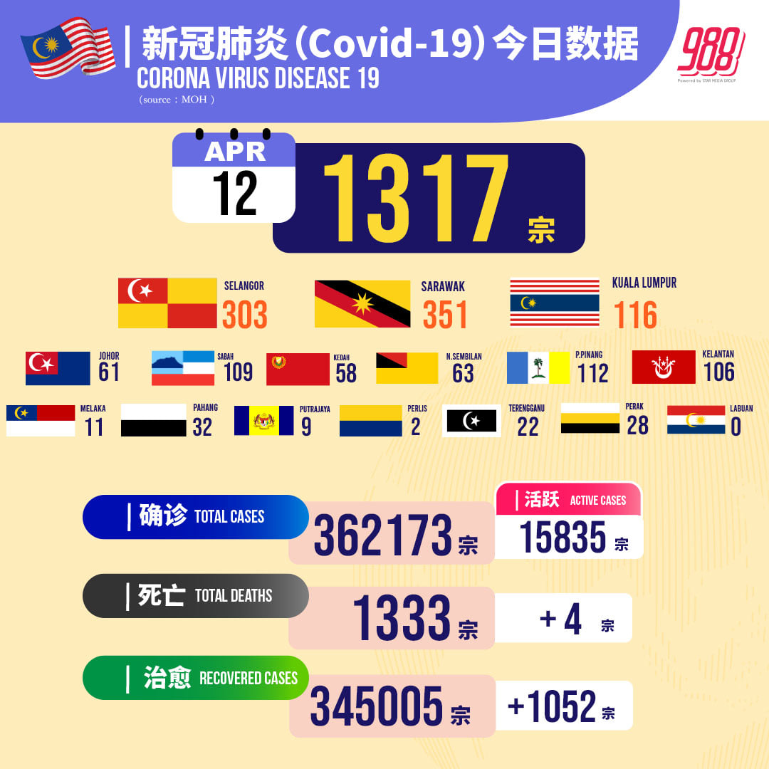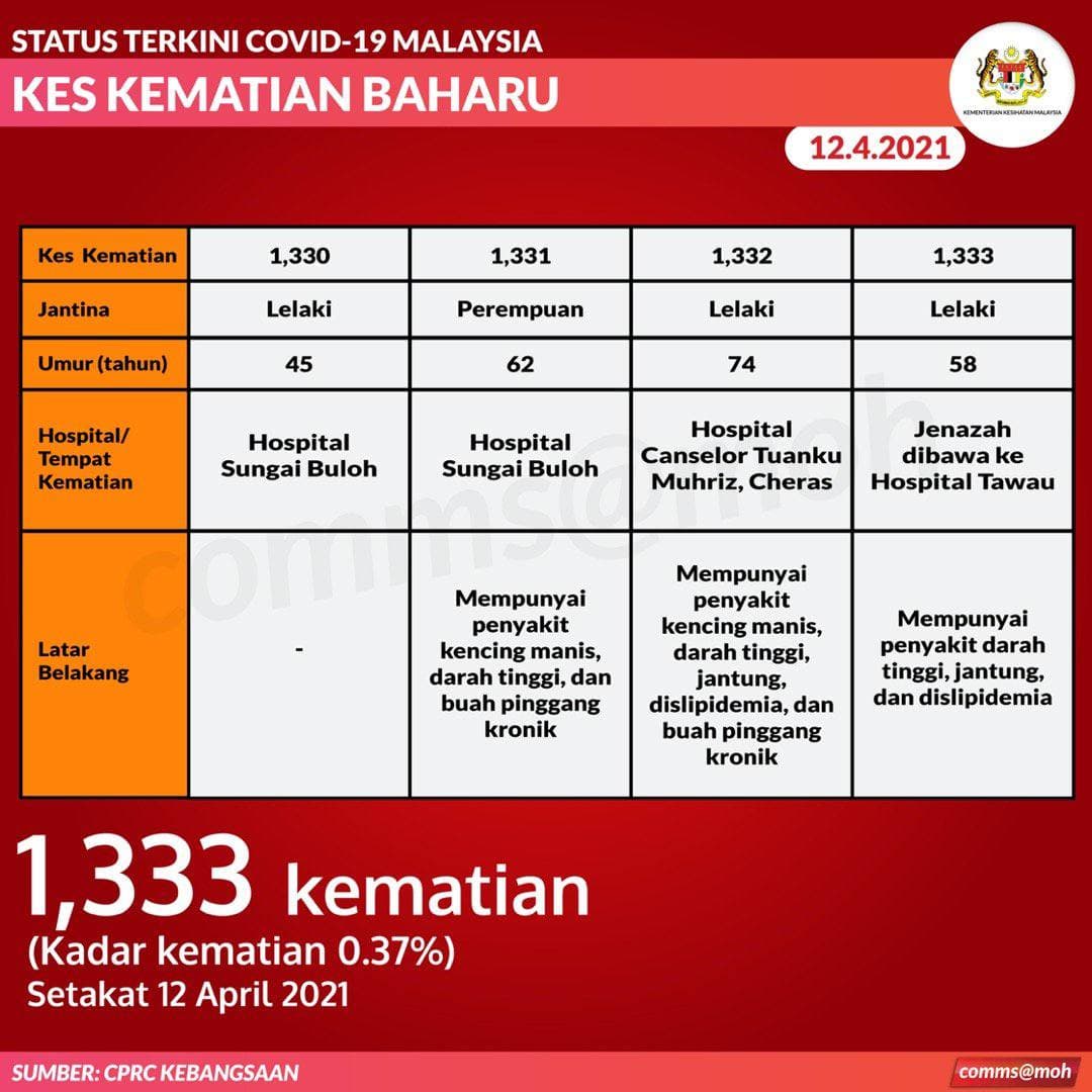 📌今天有4人死,分别来自吉隆坡(2)、雪兰莪(1)及沙巴(1)。死者资料如下: