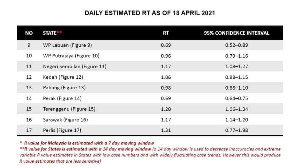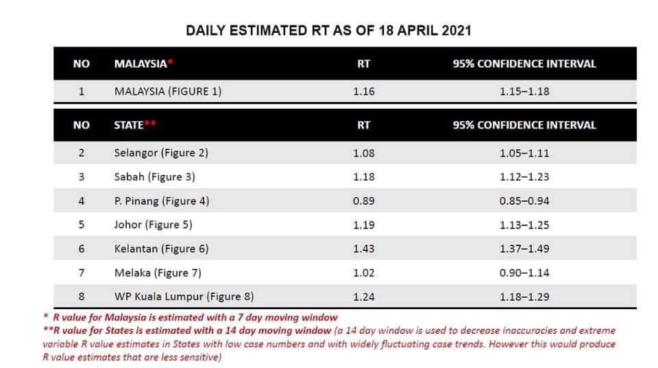 卫生总监诺希山例常在脸书公告最新基染数表,他表示4月18日的基染数是1.16。在这之前,基染数从一度攀高至1.19,逼近了1.2,一旦跨过这个水平线,日增确诊有可能超过3000例。