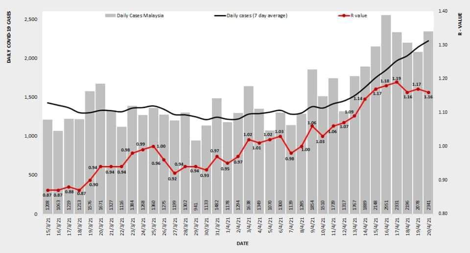 卫生总监诺希山例常在脸书公告最新基染数表,他表示4月20日的基染数是1.16,平了16日的纪录。