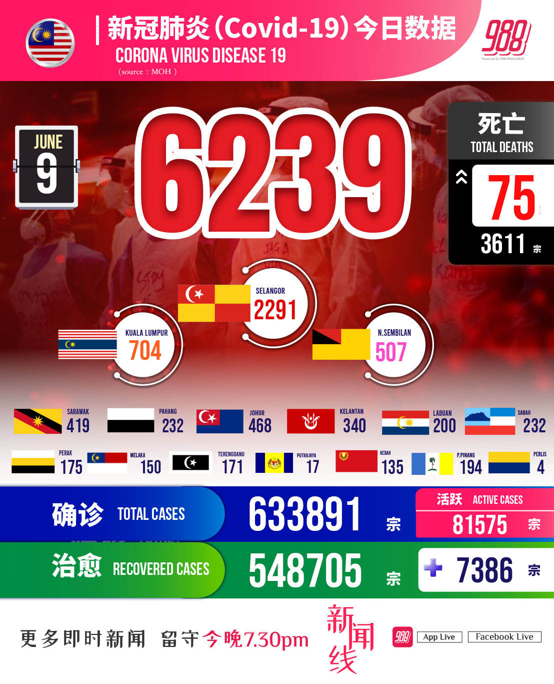 📌今天有75人死,分别来自雪州(23)、柔佛(18)、吉兰丹(7)、吉隆坡及吉打各5个、沙巴、马六甲、森美兰及砂拉越各3个、霹雳(2)、槟城、登嘉楼及纳闽各1个