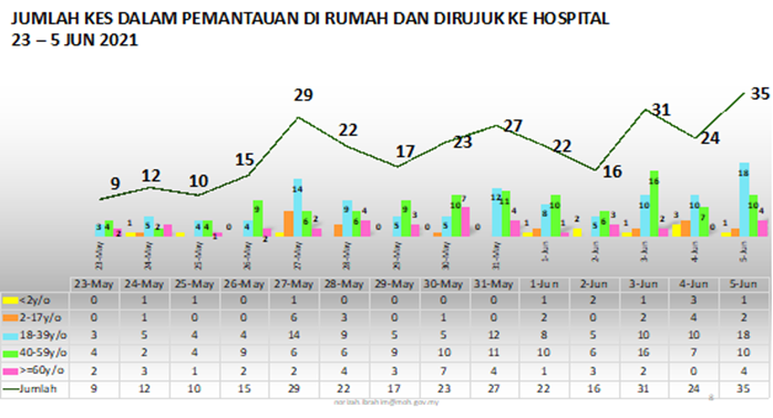 📌CAC评估居家隔离后转介至医院的病例也从5月23日的9宗增加至6月5日的35宗:
