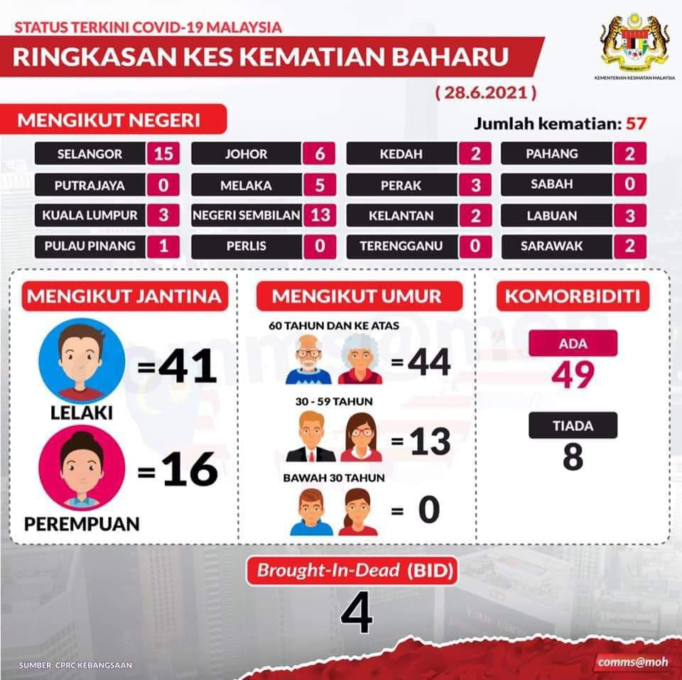📌今天有57人死,分别来自雪兰莪(15)、森州(13)、柔佛(6)、甲州(5)、吉隆坡(3)、纳闽(3)、霹雳(3)、砂州(2)、吉打(2)、彭亨(2)、丹州(2)、槟城(1)。死者资料如下: