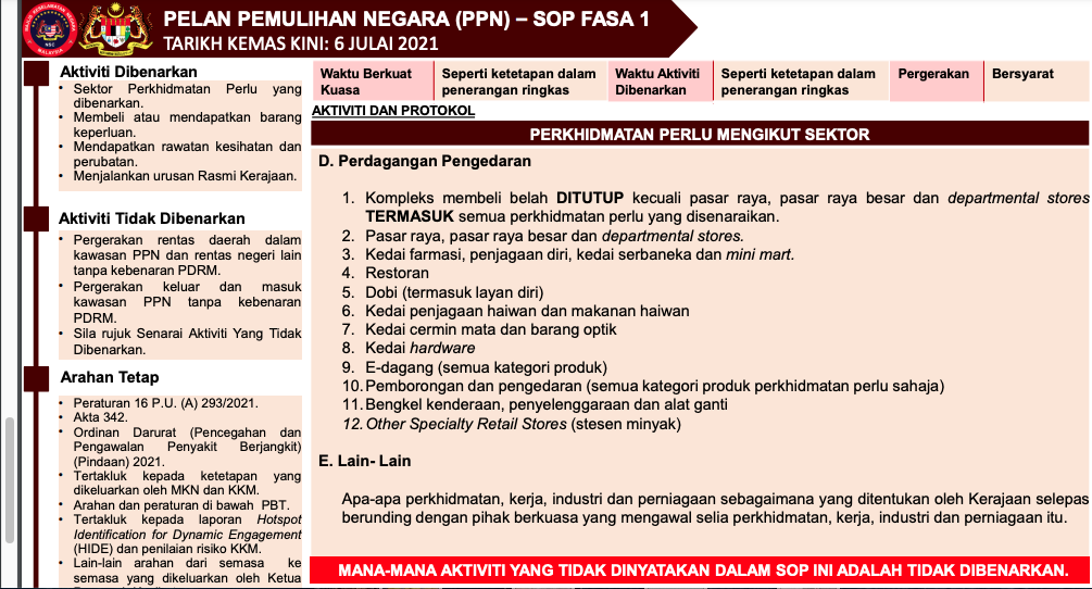 根据国安会在7月5日的SOP,超市、霸级市场和百货商店只能出售必需品,禁止售卖服装、装饰、化妆品和儿童玩具。