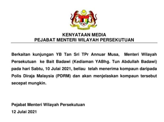 警方及联邦直辖区部不约而同先后证实此事。金马警区主任莫哈末再纳助理总监证实,警方是按照2021年紧急状态(预防和控制传染病)(修订)法令第17条文,向安努亚慕沙开出2000令吉罚单。