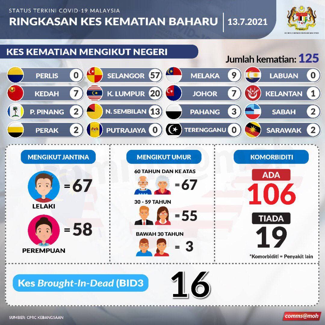 📌今天有125人死,分别来自雪兰莪(57)、吉隆坡(20)、森州(13)、甲州(9)、吉打(7)、吉打(3)、柔佛(7)、彭亨(3)、槟城(2)、霹雳(2)、沙巴(2)、砂州(2)、丹州(1)。死者资料如下: