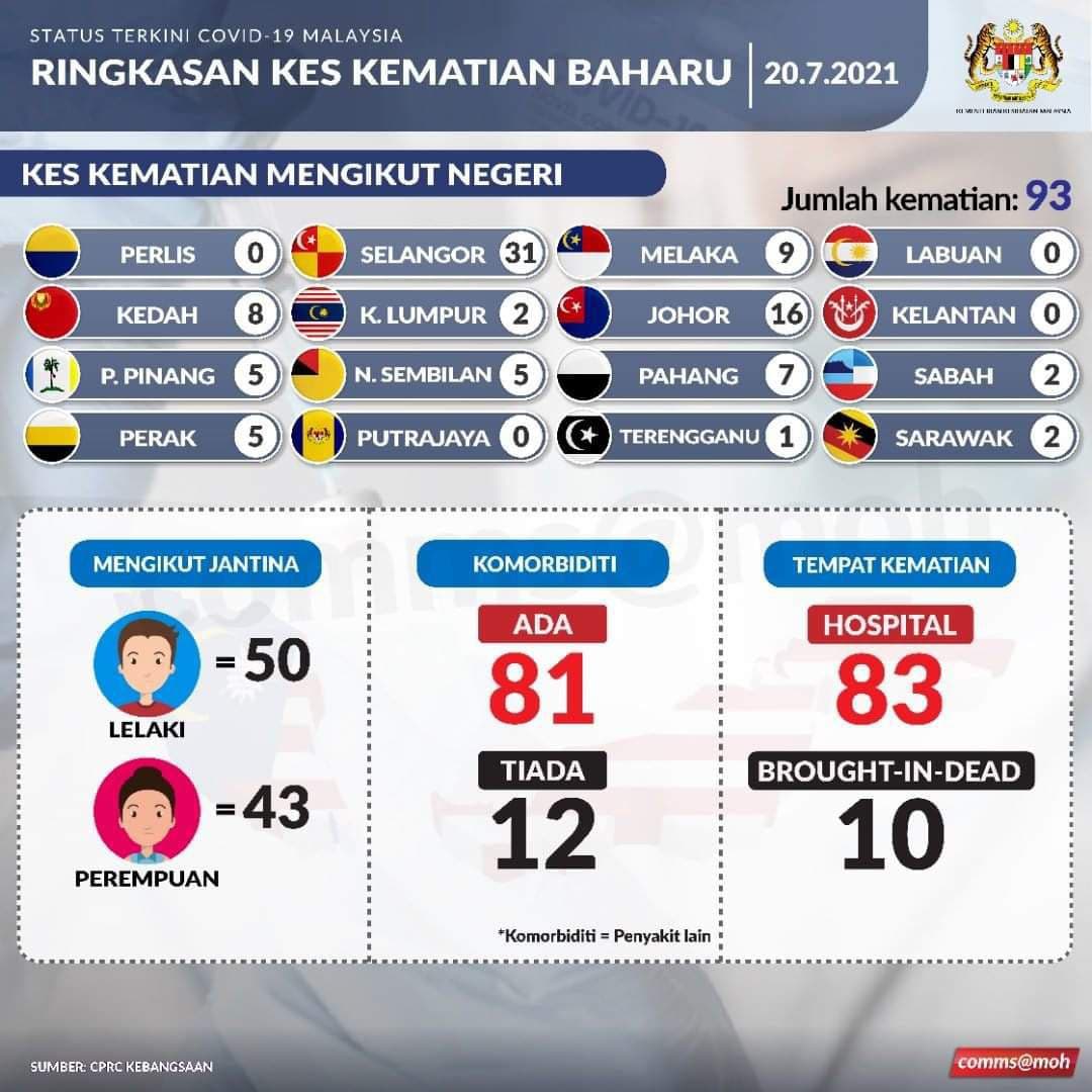 📌今天有93人死,分别来自雪兰莪(31)、柔佛(16)、甲州(9)、吉打(8)、彭亨(7)、槟城(5)、森州(5)、霹雳(5)、沙巴(2)、吉隆坡(2)、砂州(2)、登州(1)。死者资料如下: