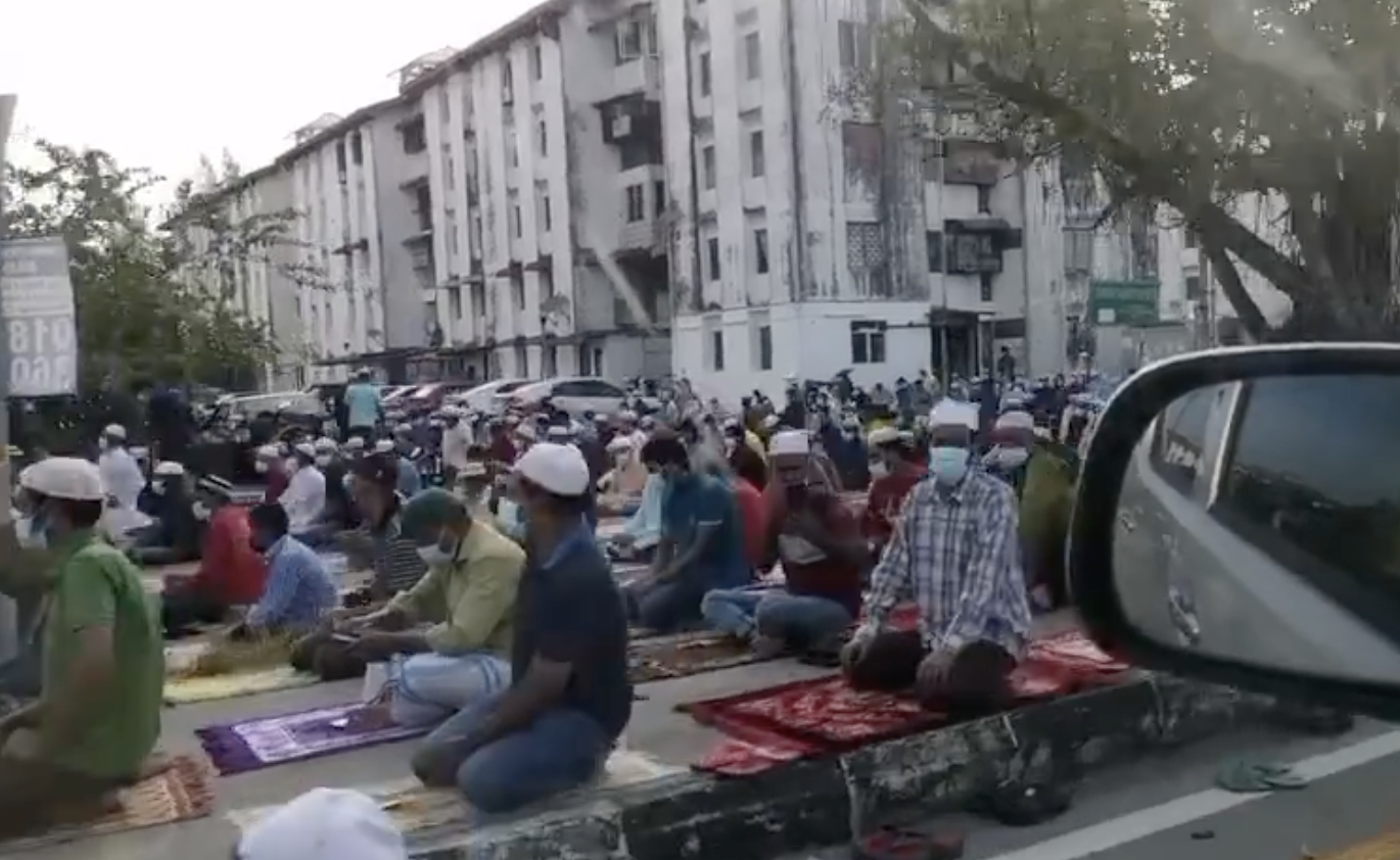 根据上载视频的网民披露,这是今早8时40分在彩虹花园组屋(pelangi flat)拍摄的。拍摄者在视频中怒责:“我们被关到半死!外劳就集体出来祈祷。再继续放肆下去,再好的疫苗都没得救了!请各位帮忙tag 一下个大报道(章),让政府严重(正)看待这件事!别让白白的浪费我们这些duduk rumah的良好市民!”