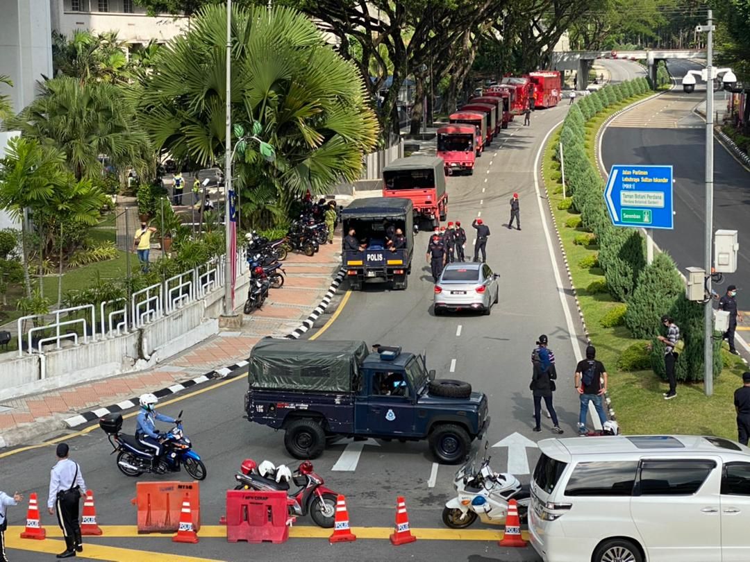 国会因疫情关系,通报今日不会复会及展延情况下,希盟一众反对党国会议员今日照常赴国会,但警方出动大批警力及镇暴队封锁所有路口堵住去路,反对党议员较后转到独立广场拉布条抗议,最终在国会反对党领袖安华代表全体议员发言后和平散会。