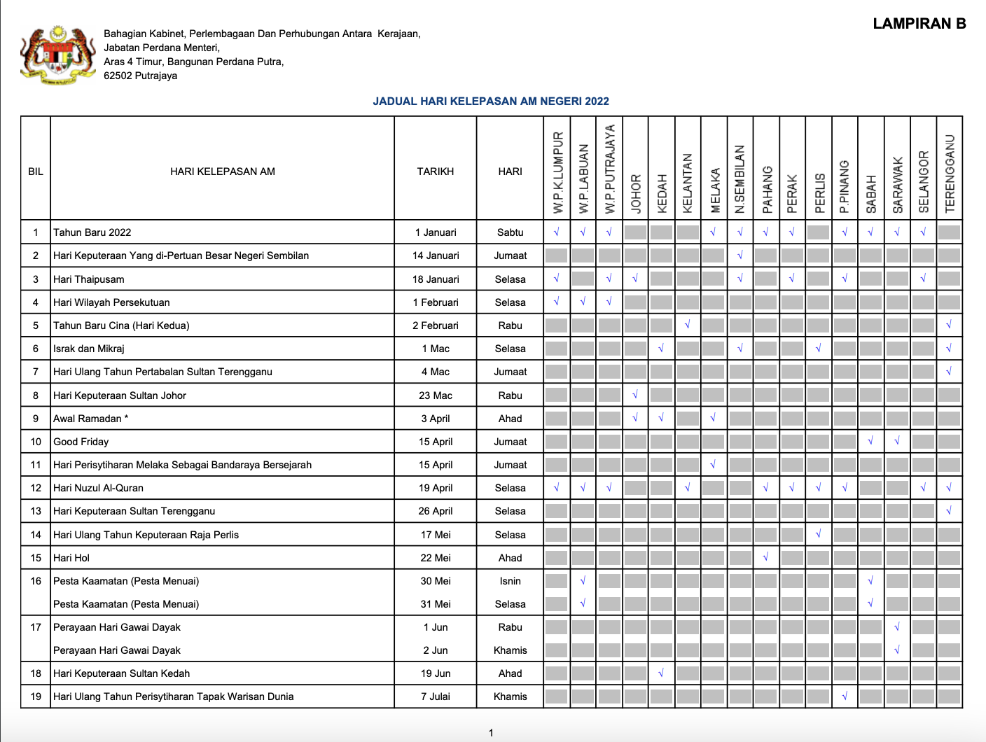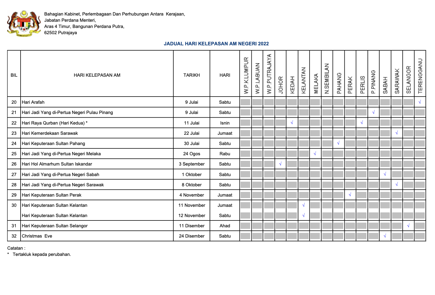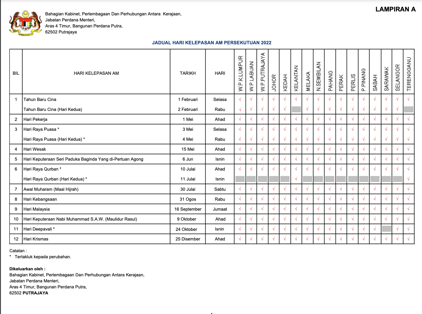 需要注意的是,哈芝节(7月10日)和屠妖节(10月24日)的公共假期届时或有变动,一切以官方公布为准。