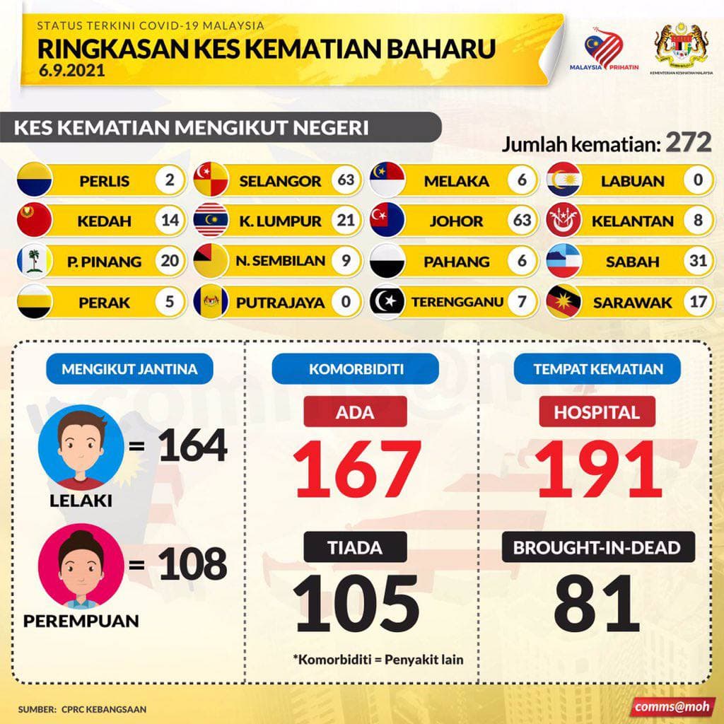 📌今日有272人病逝,州属分布及死者资料如下: