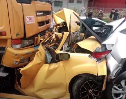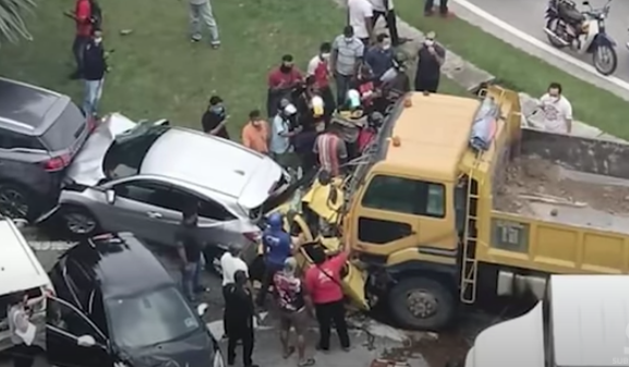 一辆载沙罗厘行驶途中,突失控一路猛撞前方5辆轿车,其中一辆黄色Myvi轿车被撞成废铁,所幸车内男司机保住一命;警方初步调查,肇祸罗厘司机案发时没喝酒,但却有吸毒!