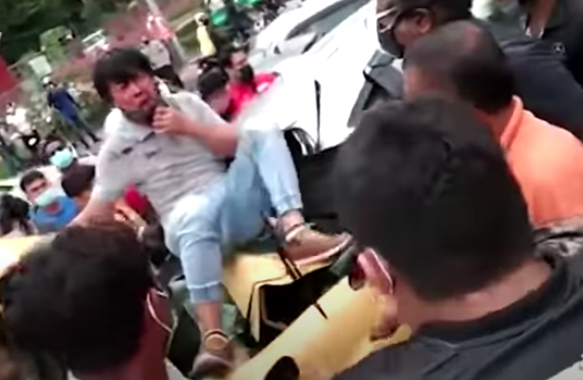 根据在现场民众所拍摄的视频显示,黄色Myvi轿车司机虽然一度受困在车内,但经过民众帮忙,最終可自行爬出车。