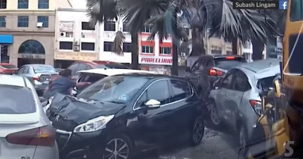 根据脸书上流传的一段行车记录仪录像显示,事发时车辆都停靠在转红的交通灯前,突然后方驶来一辆失控的黄色重型罗里,先冲撞前方的黄色Myvi轿车,然后推着Myvi轿车撞向多辆车子后才停下,酿成6车连环撞,其中黄色轿车更被罗厘夹扁。