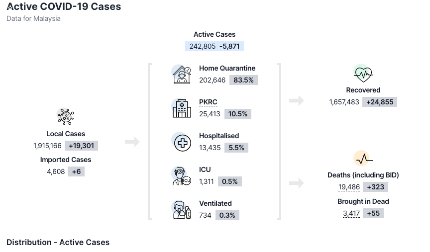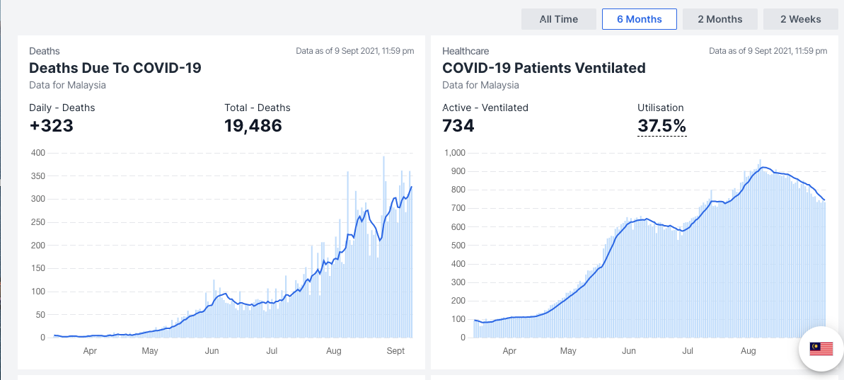 除了卫生部此前每日公布的数据外,CovidNow网站会更新确诊病例和死亡病例的接种状况及疫苗种类、每个州属的病床、加护病房和呼吸辅助器使用率,以及每种疫苗的免疫接种后不良事件(AEFI)的数据等。