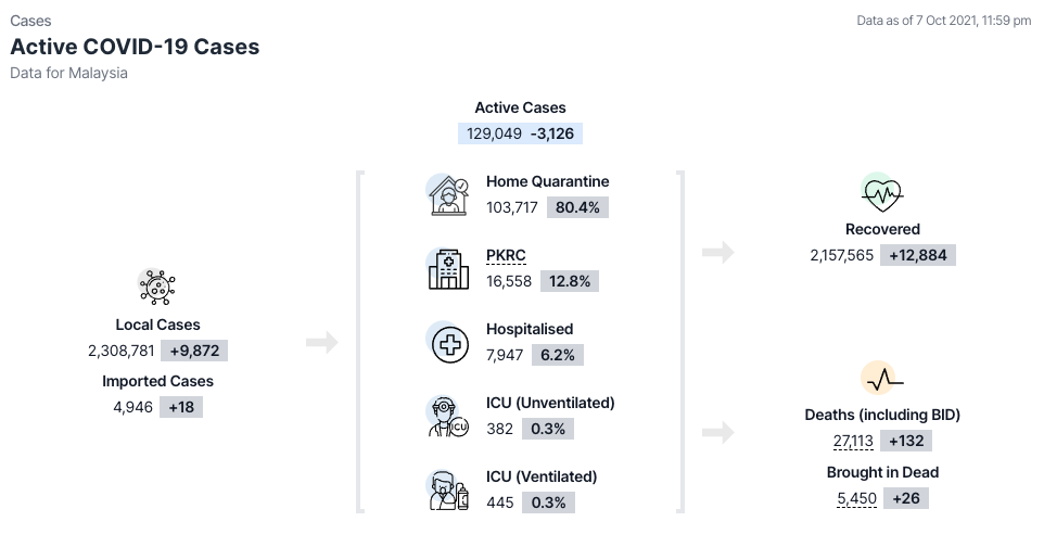 卫生部COVIDNOW网站深夜11时59分通报,10月7日新增死亡病例(包括积压病例)再度回扬,报132宗,累计达27,113宗。