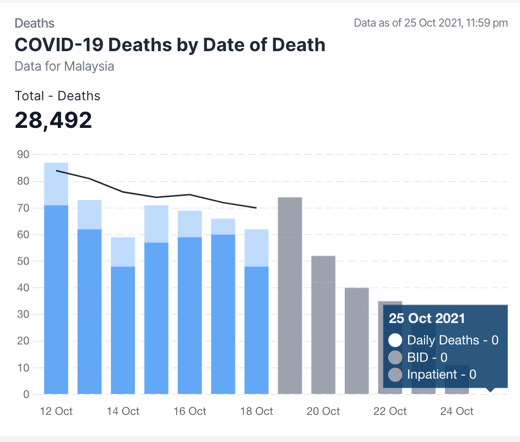 卫生部COVIDNOW网站深夜11时59分通报,10月25日新增死亡病例(包括积压病例)再度回弹近百例,报92死,累计达28,492宗。
