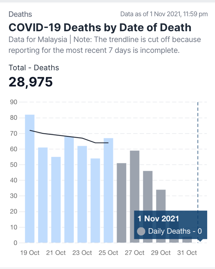卫生部COVIDNOW网站深夜11时59分通报,11月1日新增死亡病例(包括积压病例)再反弹,报63死,累计达29,038宗。