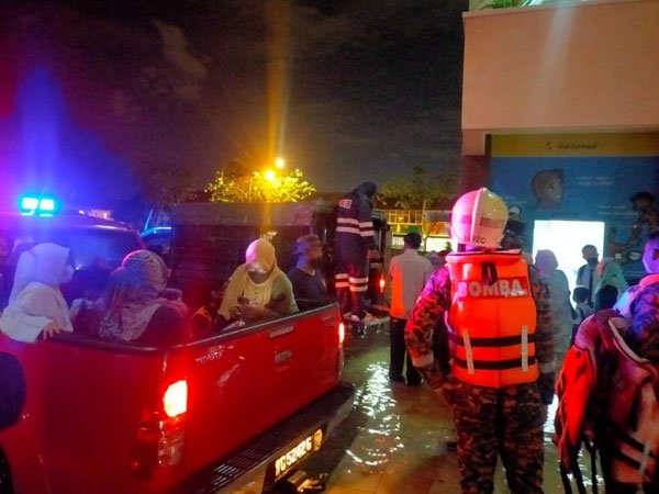 斯里沙登国小在昨晚发生水灾,18名老师及14名学生共32人被困在校园内无法离开,加上突发水灾导致外围交通瘫痪,消拯员最后以背人方式,把所有学生背离学校,交给他们的父母。