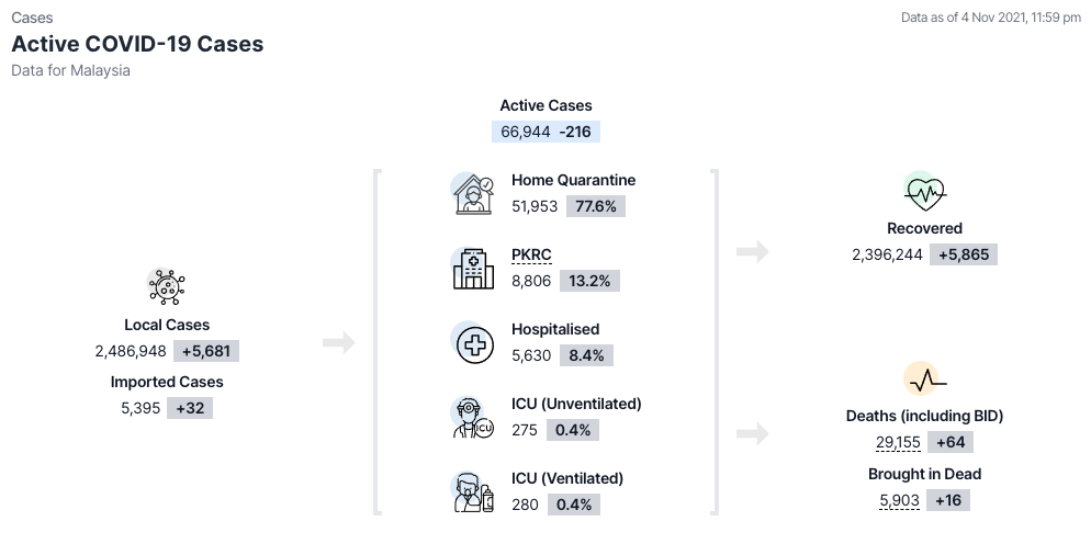 卫生部COVIDNOW网站深夜11时59分通报,11月4日新增64死亡病例(包括积压病例),累计达29,155宗。