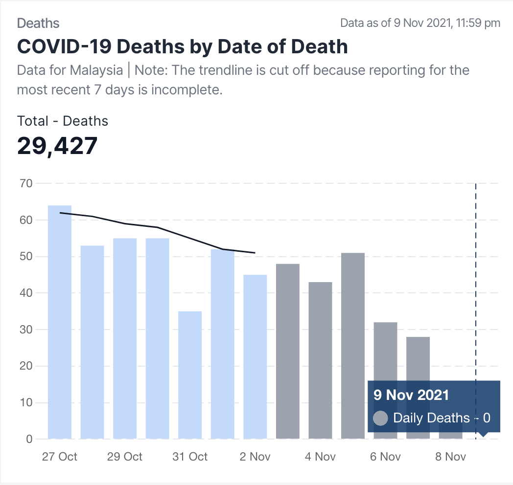 卫生部COVIDNOW网站深夜11时59分通报,11月9日新增死亡病例(包括积压病例)再飙升,报78死,累计达29,427宗。