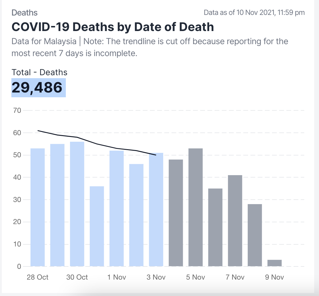卫生部COVIDNOW网站深夜11时59分通报,11月10日新增死亡病例(包括积压病例)下缓,报59死,累计达29,486宗。