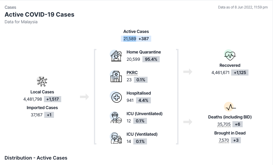 卫生部COVIDNOW网站通报,截至8日11.59pm,我国新增 #1519 宗,累计病例至今 #4,518,965宗,再有6死。