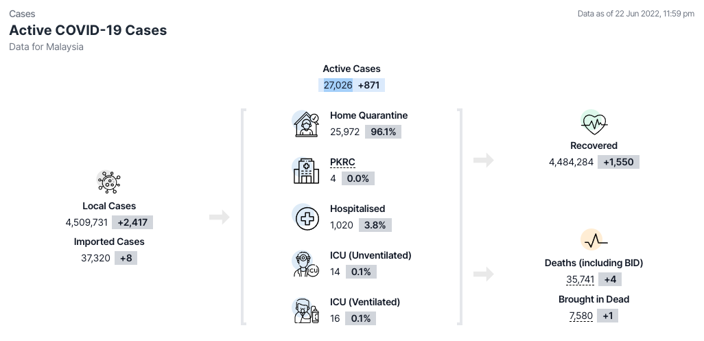 卫生部COVIDNOW网站通报,截至22日11.59pm,我国新增 #2425例,累计病例至今 #4,547,051宗,再报4人死。