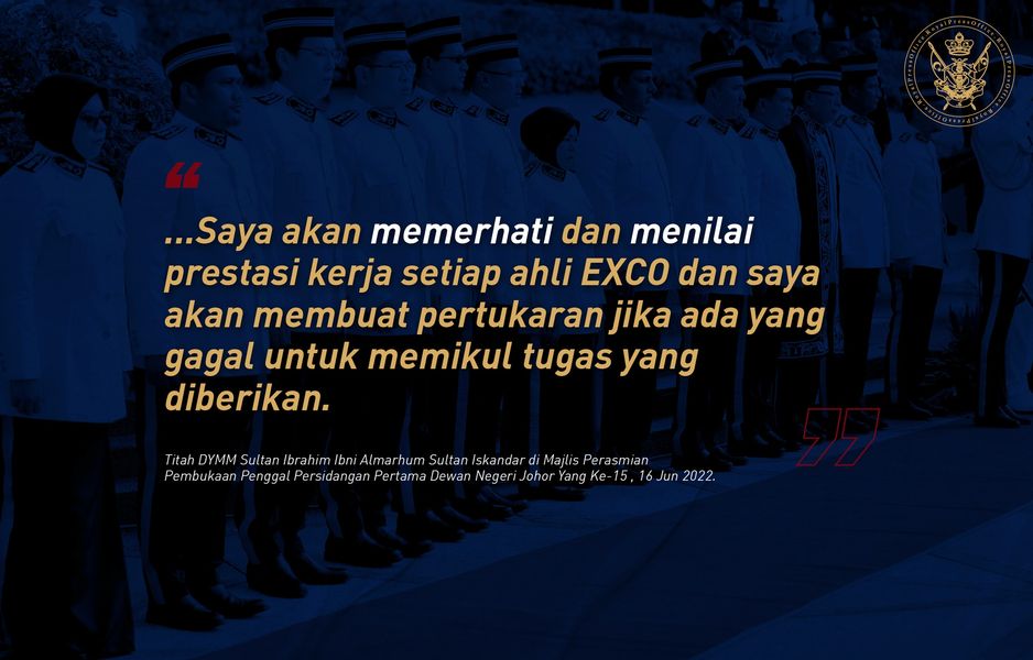 柔佛苏丹依布拉欣陛下向柔州政府发话,扬言任何在州阁内的成员无法胜任职务,就会被撤换!